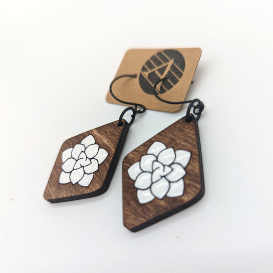 Hand-painted Enamel on Wooden Diamond Succulent Pendants